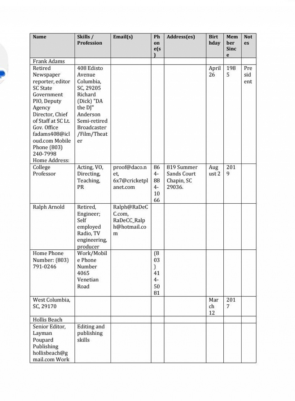 This page will have a scrollable member directory